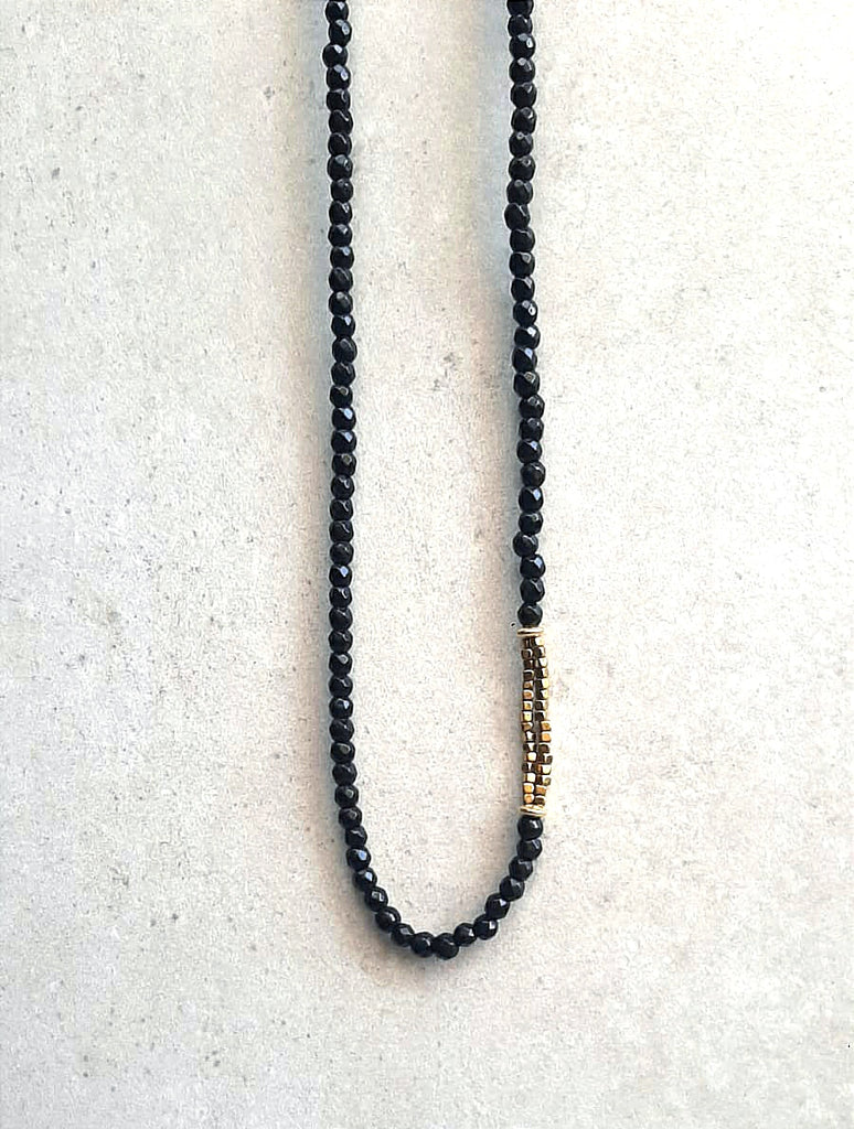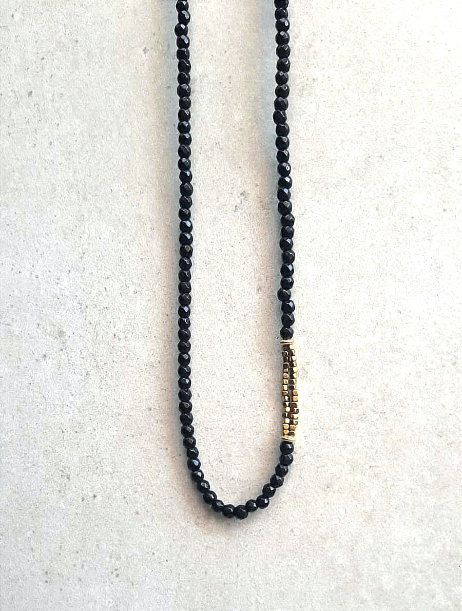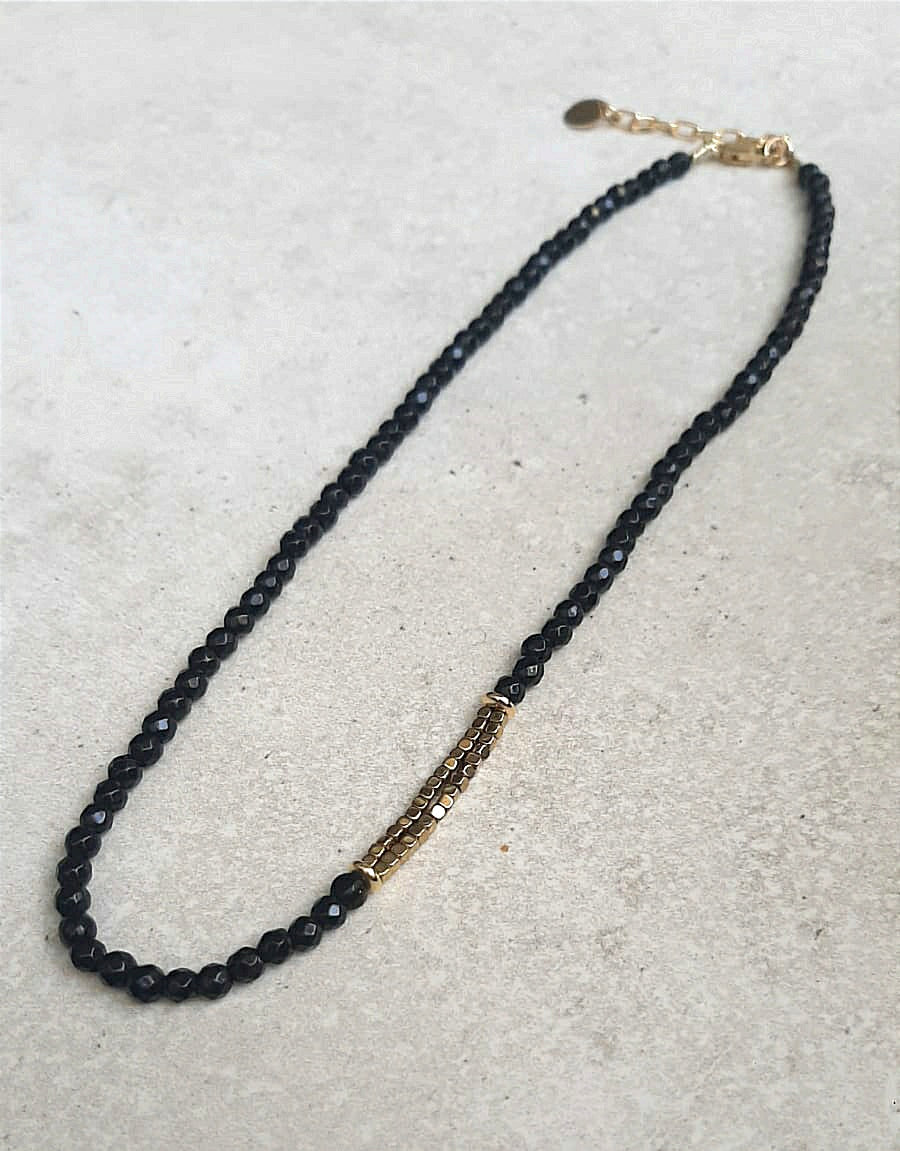 שרשרת קצרה אבני אוניקס שחורות משולבות